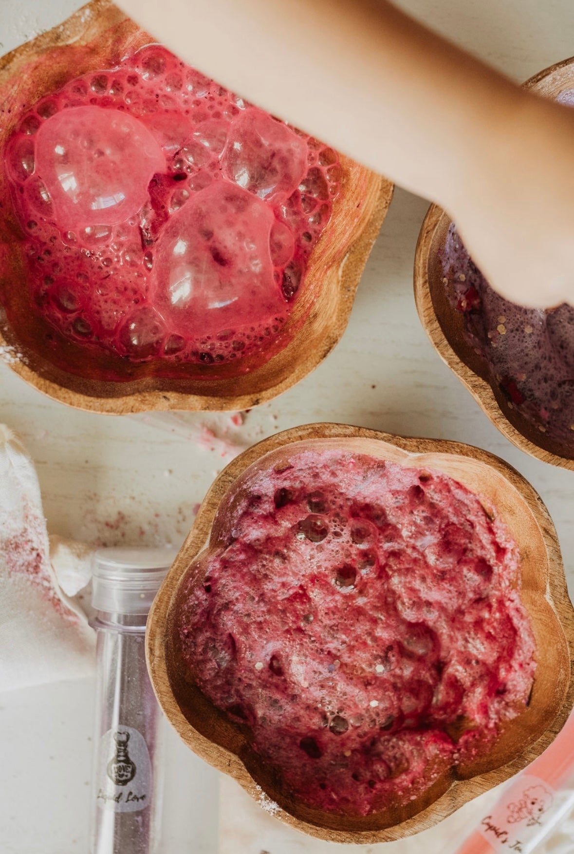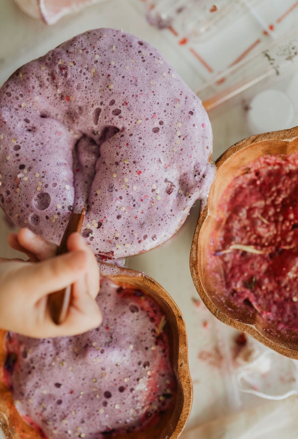 Sodium Bicarbonate, Citric Acid, Magnesium Sulfate, Acetic Acid, Sodium Lauryl Suffoacetate, Zea Mays, Skim milk powder, Canola Oil, Aqua, Parfum, Cocamidopropyl Betaine, FD&C Color, Biodegradable Eco Glitter